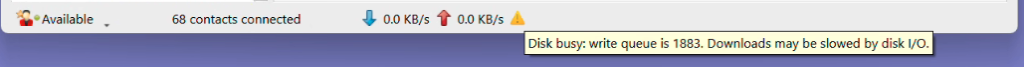 Une icône d’alerte jaune apparaît en bas de l’écran pour signaler que la file d’attente d’écriture est en cours de remplissage.